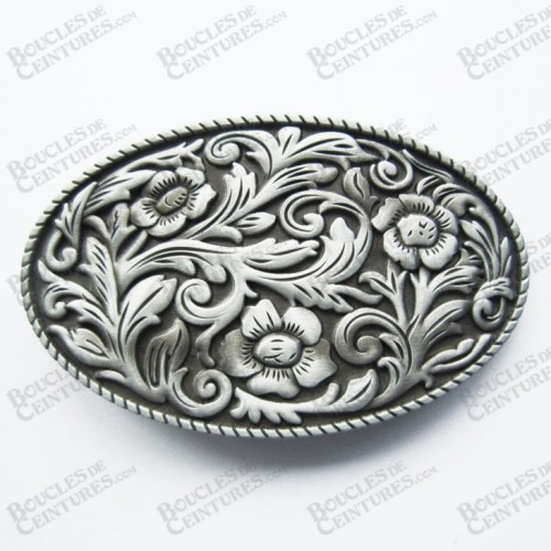 BOUCLE DE CEINTURE COWGIRL SUR FOND ARGENT